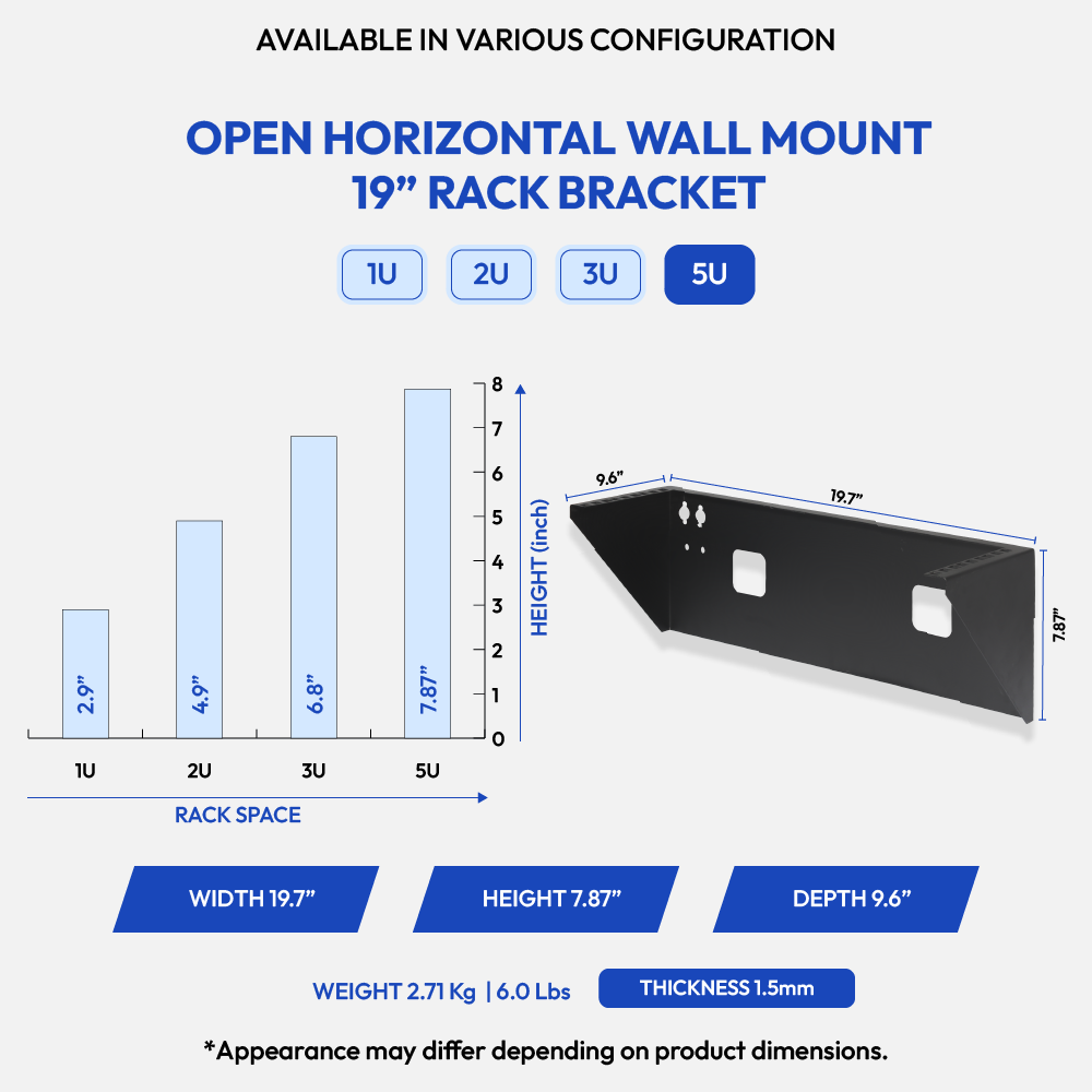 Open Horizontal Wall Mount 19" Rack Bracket -5U