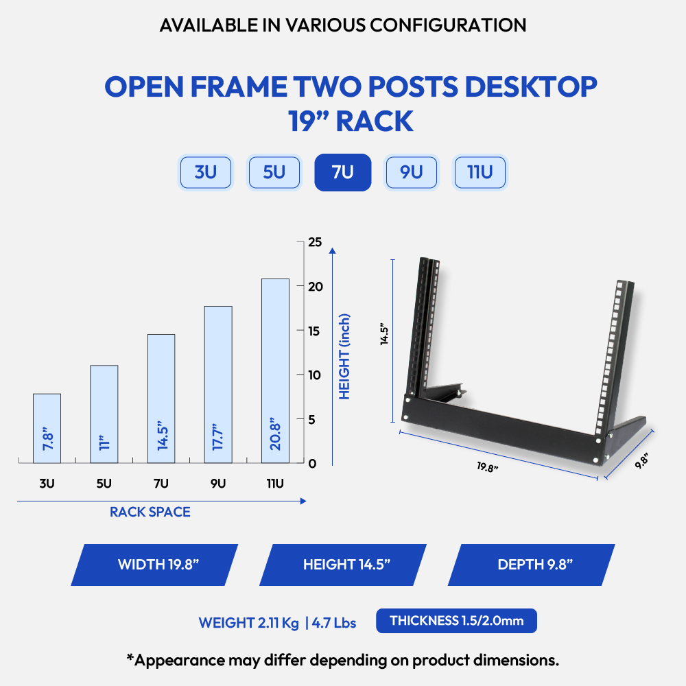 Open Frame Two Posts Desktop 19" Rack - 19ODTTP7U